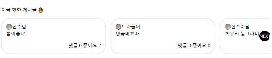 - 슬라이드 요소를 감싸는 박스의 사이즈가 위치 값이랑 같으면 미노출(하지만 이 부분은 개선이 필요..)