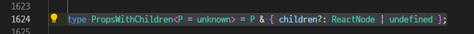 마우스 오른쪽 버튼을 눌러서 index.d.ts에 이동하여 type PropsWithChildren 타입을 보면 children을 반드시 설정하지 않아도 되는 선택적인 속성임을 알 수 있다.