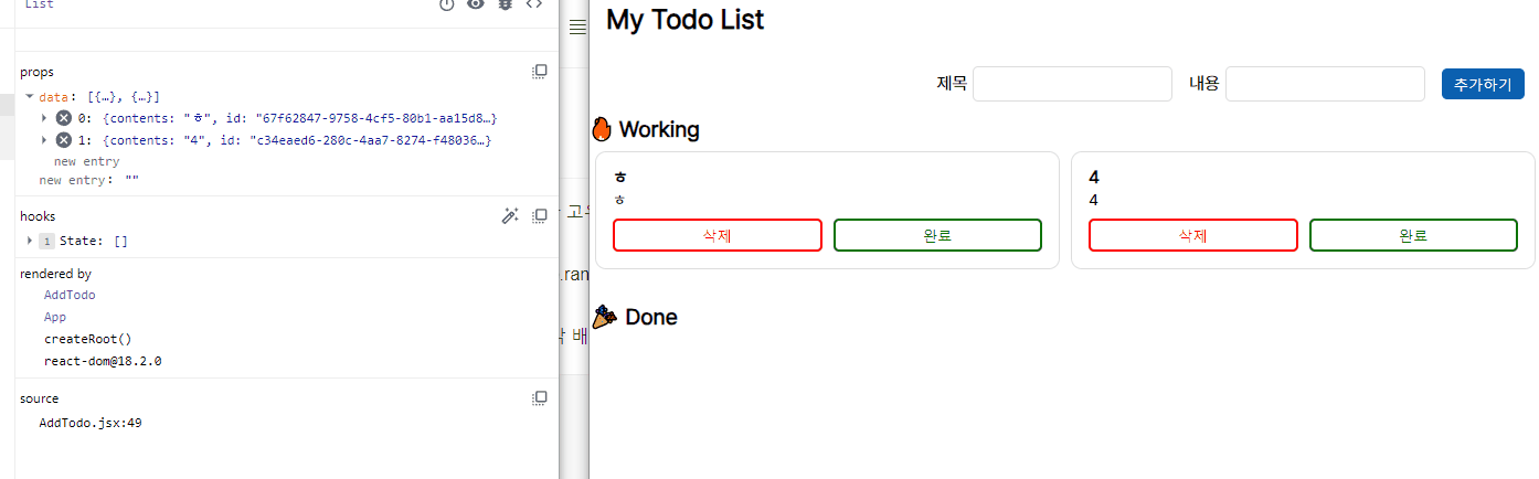 왼쪽 props 부분에 id가 길게 들어가는 것을 볼 수 있다.