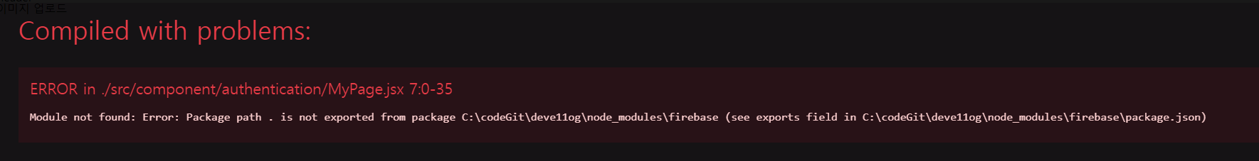 firebase의 storage로 이미지 업로드 기능을 구현하려고 mypage에 storage를 import 했는데... 또!!!! 에러가 났다.