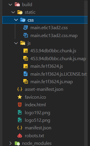 작업하던 프로젝트에서 npm run build 명령어를 실행하니 build 폴더가 생기면서 js 파일이 몇개 생성되었다.